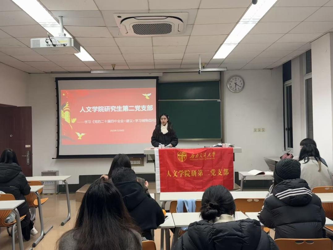 研第二党支部于九里校区J4221教室组织开展12月主题党日活动。本次活动由党支部书记上官婧钰同志主持,支部全体成员共同参与学习。