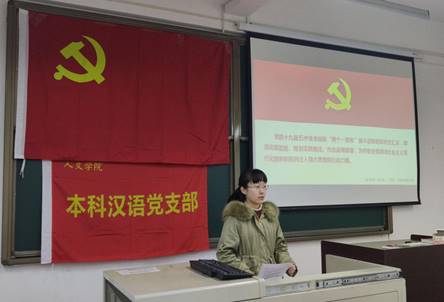 本科汉语党支部在X8319教室开展主题党日活动,共同学习中国共产党第十九届中央委员会第五次全体会议精神。党的十九届五中全会于2020年10月26日至29日在北京举行,全会审议通过了《中共中央关于制定国民经济和社会发展第十四个五年规划和二〇三五年远景目标的建议》(以下简称“《建议》”)。支部同志在本次党日活动中明确了《建议》提出的“十四五”规划指导思想、基本原则、目标要求等重要内容,积极分享了个人学习心得。活动由支部书记刘晗悦同志主持。